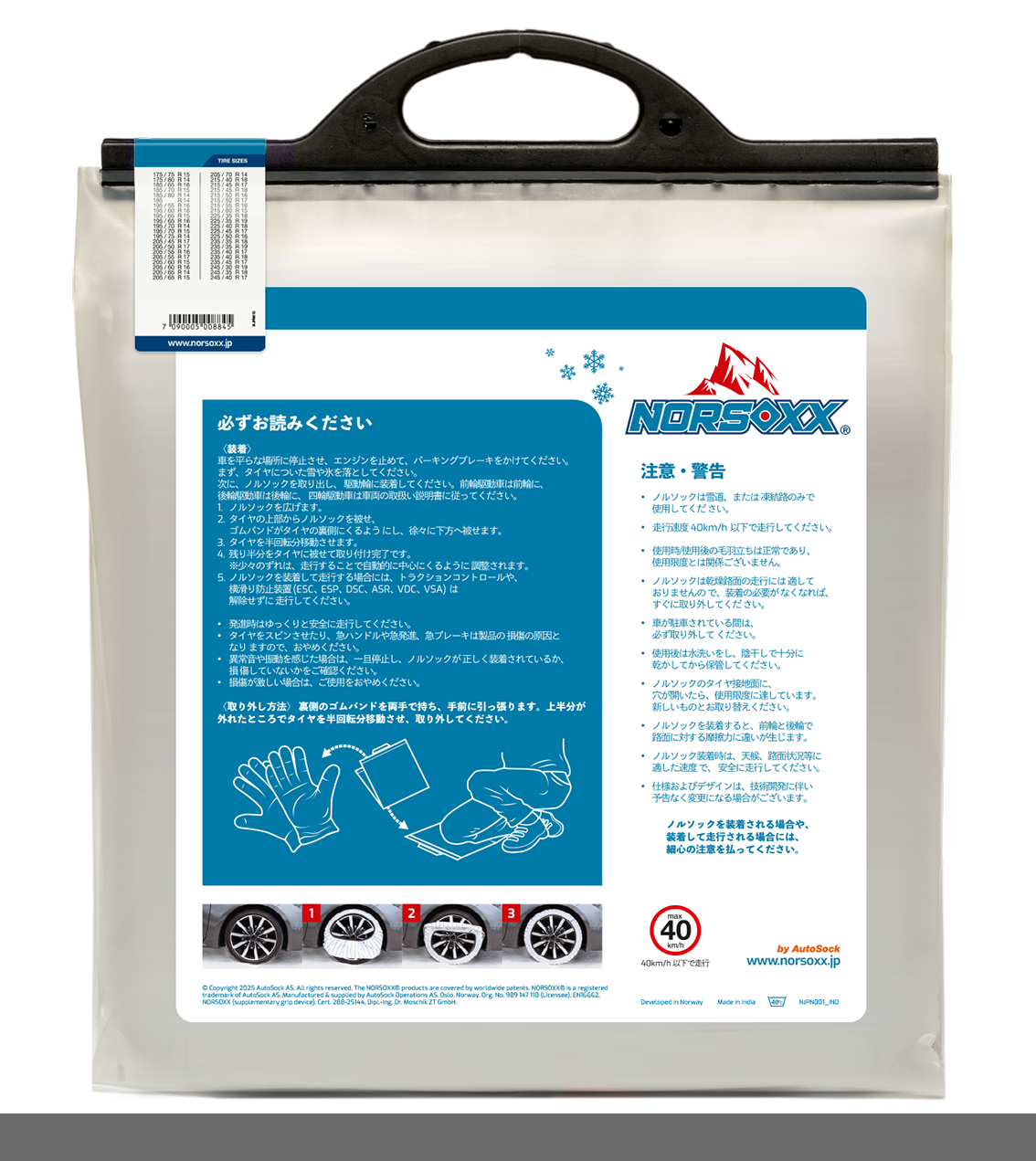 ノルウェー発の NORSOXX スノーソックスは、500種類以上の代表的なタイヤサイズをカバーする豊富なサイズ展開をご用意しています。